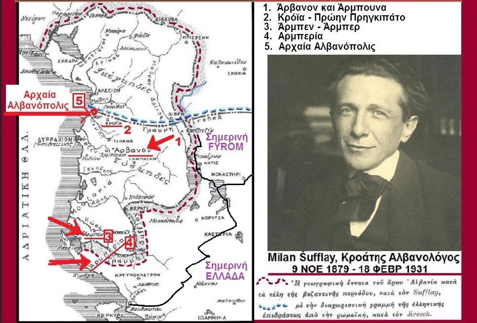 -9- Στην Αλβανική Ακαδημία, μεταξύ άλλων, υπάρχουν δύο μελέτες διεθνολόγων-γλωσσολόγων (Josef Jiresek και Milan Sufflay), οι οποίοι κατέγραψαν ο καθένας ξεχωριστά,, για την επικρατούσα μητρική γλώσσα (Ελληνική) νοτίως της γραμμής Jiresek στη Βόρεια Ήπειρο…